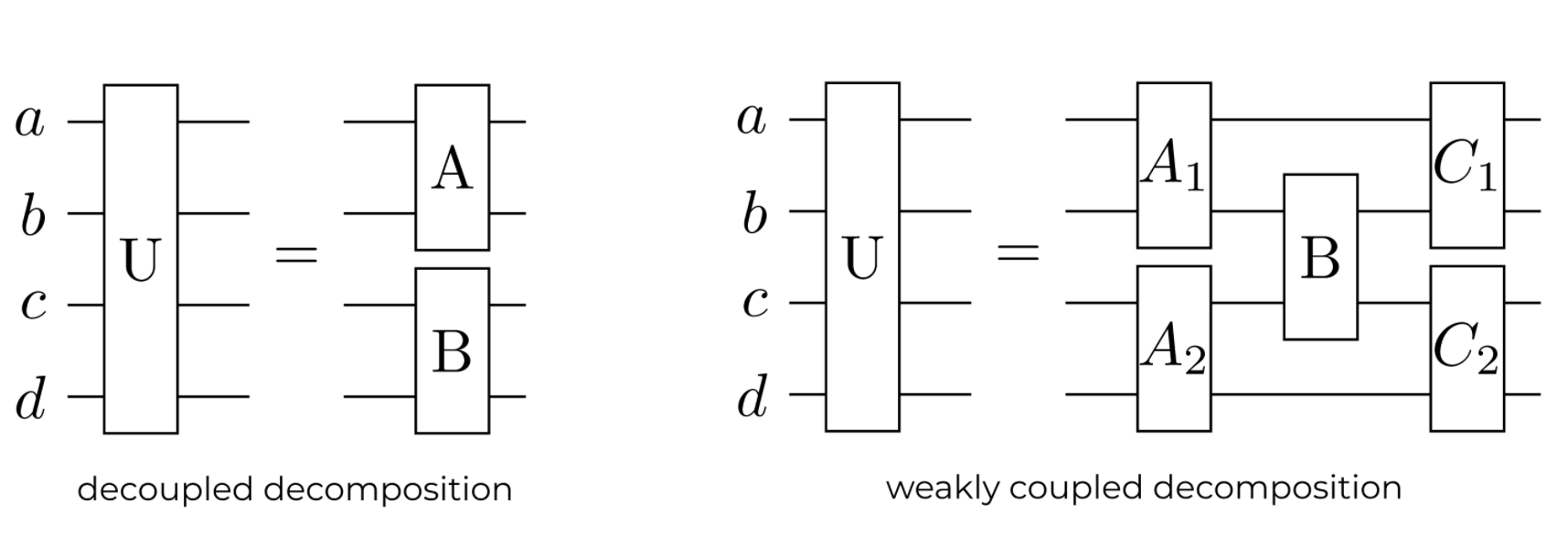 Our proposed methods achieve substantial reductions in computation time through strategic circuit decomposition. By partitioning the original circuit into smaller subcircuits, we exponentially decrease the operational dimensionality, leading to significant complexity reduction. While this tutorial specifically examines the case of dividing \(n\) qubits into two (for decoupled) / multiple (for weakly coupled) - subcircuits of \(\frac{n}{2}\) qubits, the methods remain valid for any partition size that satisfies the structural requirements.